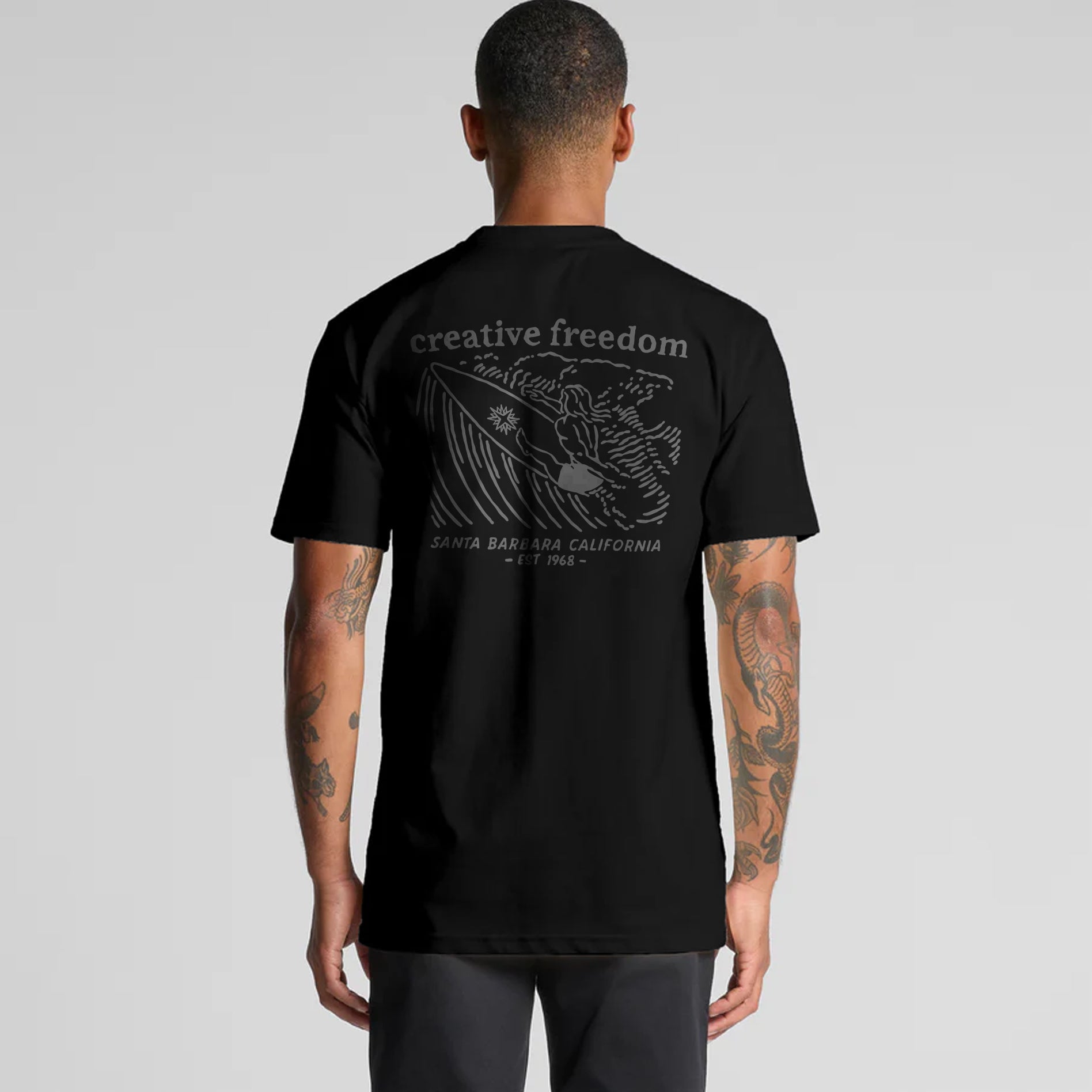 Crafted from premium ringspun cotton,  preshrunk, straight fit pocket tee with original Creative Freedom artwork